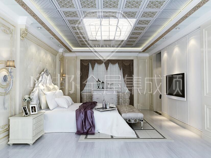 白色,是一種包含了光譜中所有顏色光的顏色,明度較高,因此不僅能與各色系搭配,同時(shí)也容易與其它色調(diào)形成強(qiáng)烈的比對。整個(gè)床白的設(shè)計(jì),加上夢幻紫色的絲質(zhì)家紡,柔軟質(zhì)感與溫馨色調(diào)給人異常的舒適感。抬頭,舒緩的燈光與精致的頂上風(fēng)光,襯托出高貴優(yōu)雅以及奢華的風(fēng)情。
