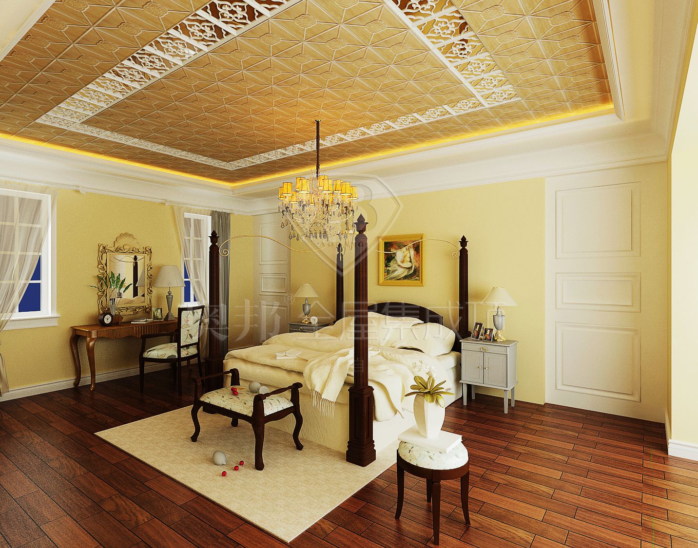 臥室頂面作適當的裝飾,不僅能美化室內環境,還能營造出豐富多彩的室內空間藝術形象。在選擇吊頂裝飾材料與設計方案時,要遵循既省材、牢固、安全、又美觀、實用的原則。吊頂不易過于復雜,面積稍大的可做二級吊燈、分層吊頂,小空間適宜平面式吊頂,而空間層高低的則可用特殊的貼頂式安裝方法進行吊頂。