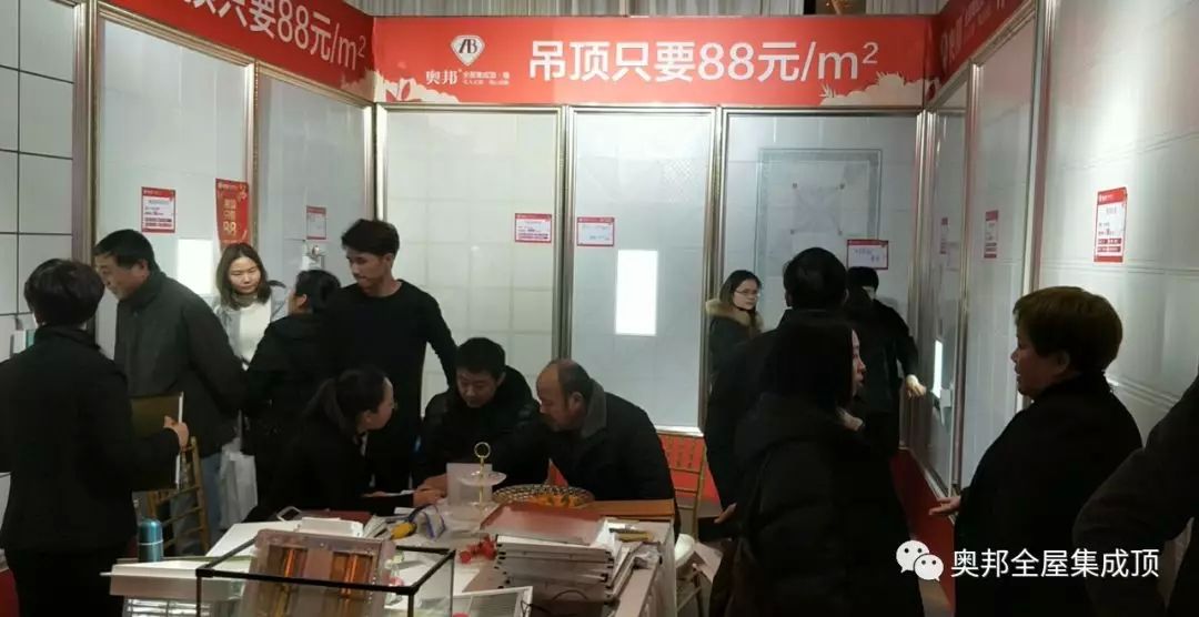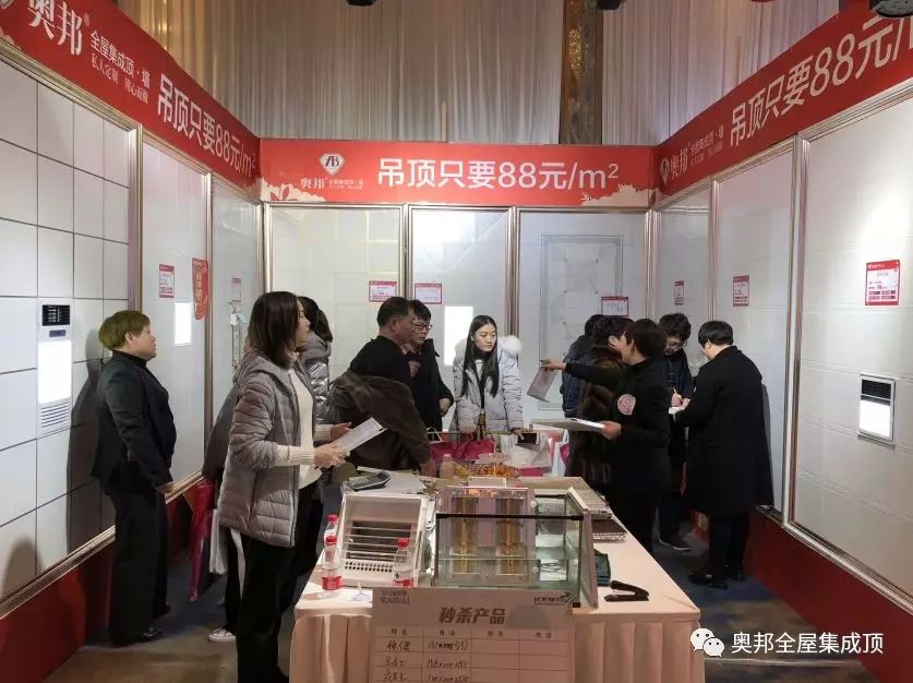 奧邦限量推出的特價吊頂、電器,現場吸引不少顧客前來了解咨詢,瞧,咱們奧邦常州的經銷商家人們正在熱情、耐心的介紹產品的優勢呢。