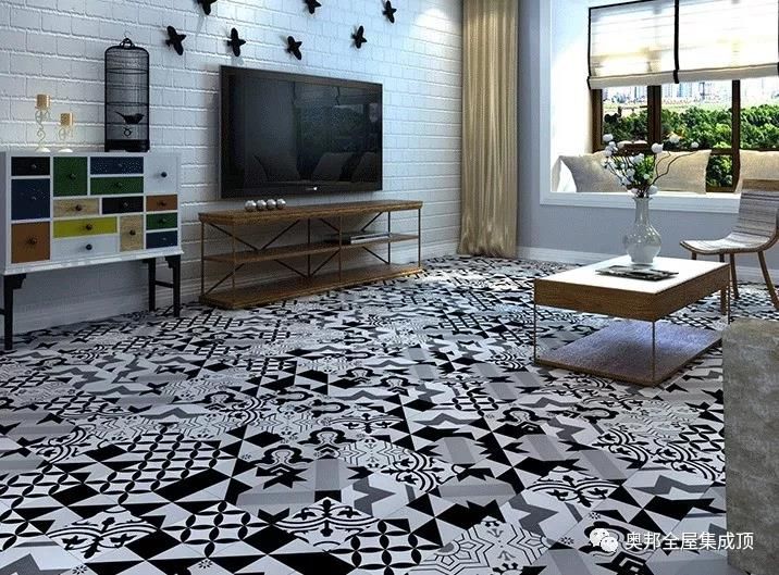 統一是一種美,對稱是一種美,而萬綠叢中一點紅是另外一種美。鋪瓷磚的時候可以考慮用花磚做點綴,給統一的畫面中加點不一樣,不知你喜不喜歡呢?
