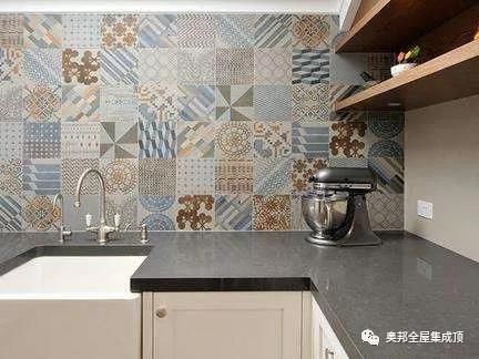 花磚除了有彩色,也有黑白灰的圖案,可以作為點綴,和其他材料進行拼接。用于廚房不僅顏值高,根據廚房的風格任意搭配。相同的花磚搭配出不一樣的感覺。