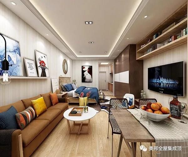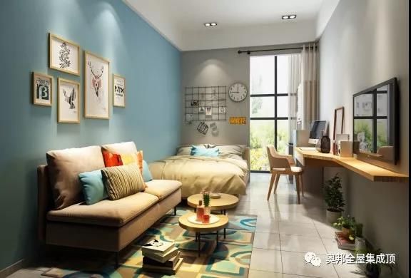 很多人獨居都喜歡單身公寓、小居室,當然裝修問題也會隨之而來。既要讓空間寬敞明亮,又要達到視覺上的完美效果,小居室的設計風格往往比大空間更難選擇,奧邦簡潔溫馨的設計帶來美觀大方的視覺美感,搭配環保鋁全屋頂墻,更好的利用小居室空間又能提升空間的裝飾效果,輕松營造溫馨的居家氛圍。